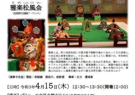 2021年4月15日 松風会雅楽コンサート~春はあけぼの楽なおよし~(プリニーの市民会館ロビーコンサート)を開催しました